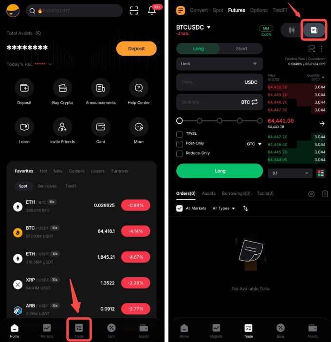 Step 1: Launch the Bybit App and go to the Futures trading page of your preferred trading pair.