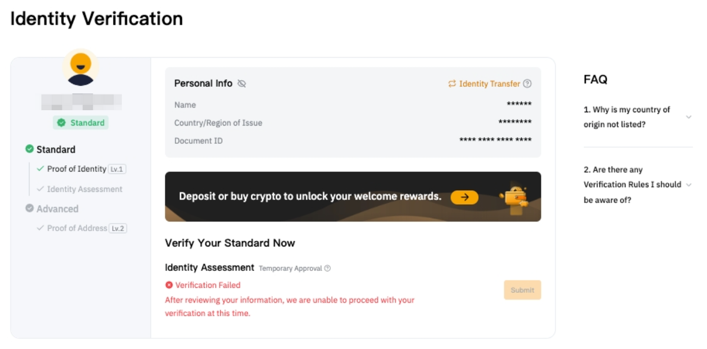 En circunstancias normales, la evaluación de identidad se completará automáticamente justo después de que hayas completado tu prueba de identidad. Sin embargo, algunos usuarios deberán completar un cuestionario de evaluación de identidad. Los usuarios son responsables de garantizar que toda la información enviada sea precisa y fiable.