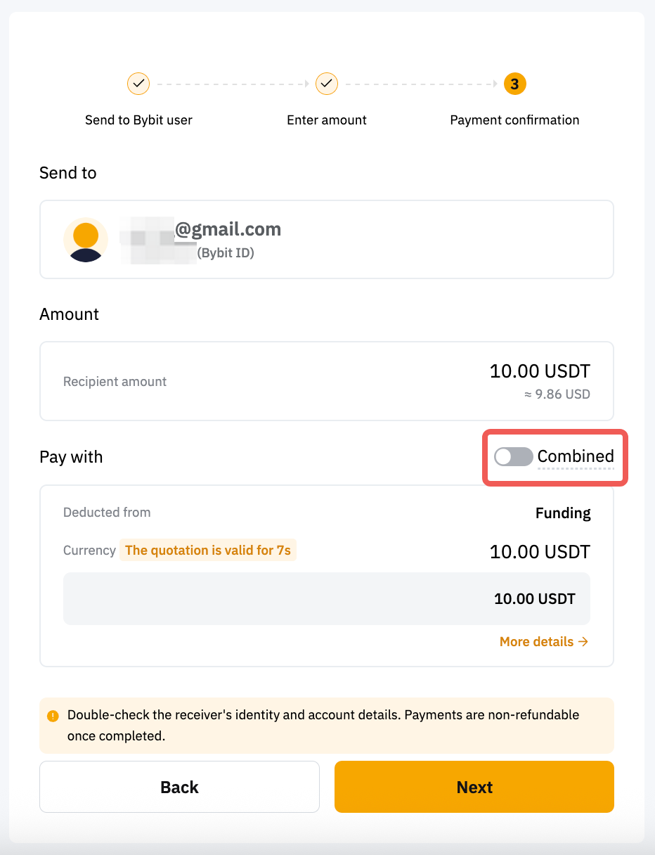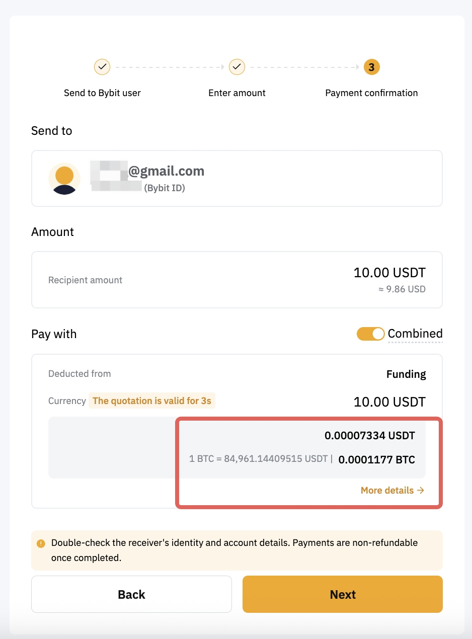 取引を確認する前に、受取人のアカウントの詳細が正しいことを確認してください。そうでない場合、間違った受取人に送金すると、資金は永久に失われ、回収できなくなります。