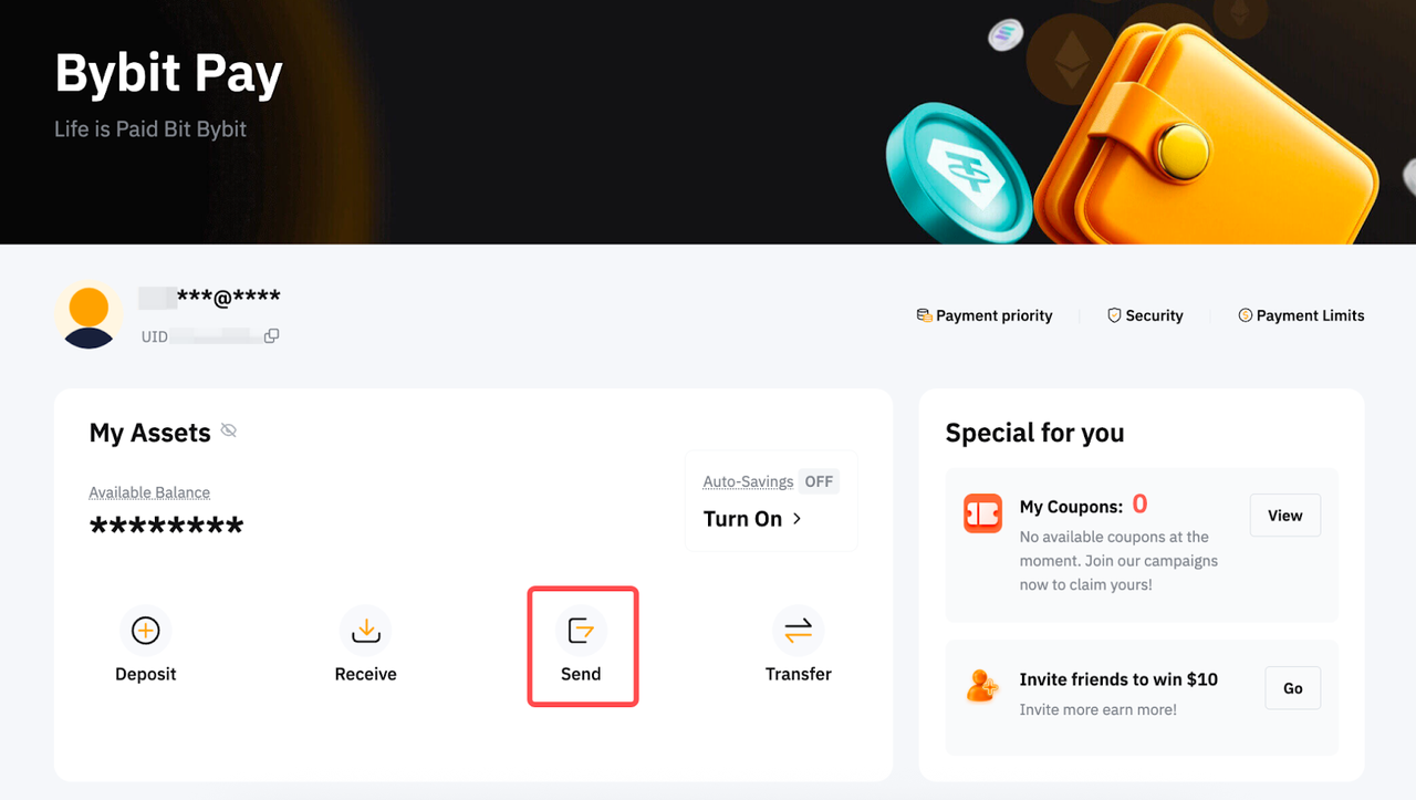 ここでは、Bybit Payでの送金方法について、下記にて説明します。