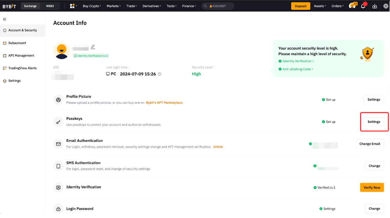 Bybitアカウントにパスキーが追加されました!