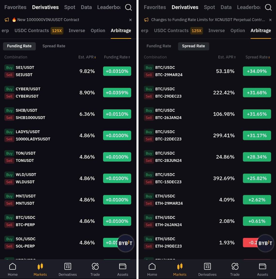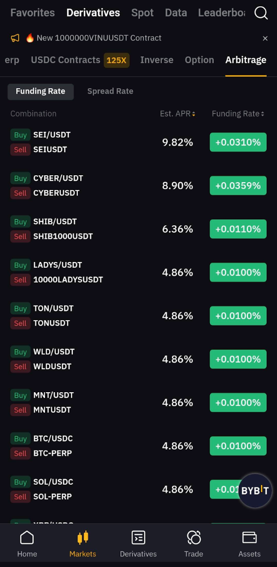 Bybit Arbitrage offers arbitrage opportunities in funding rates and spreads