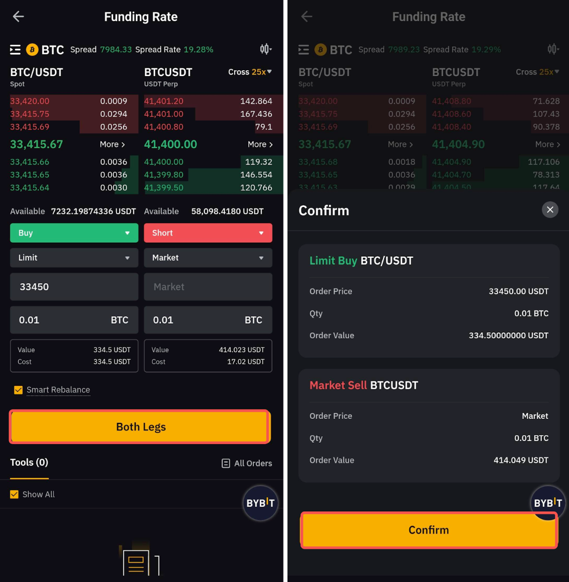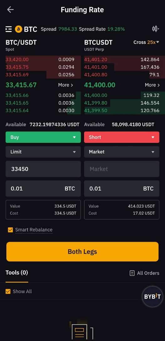 Bybit Arbitrage is a trading tool designed to help traders seize short-term opportunities emerging from price disparity in different markets. With Bybit Arbitrage, traders can monitor the order book and liquidity of two trading pairs or contracts concurrently, and place both-leg orders through a streamlined process that ensures greater precision in order fulfillment.