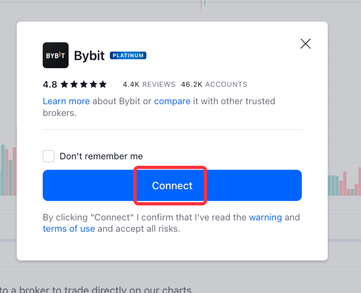 Observe que o status atual após se conectar ao corretor no TradingView só pode ser mantido por 24 horas devido à restrição imposta pelo TradingView por motivos de segurança. Saiba mais sobre como negociar com a Bybit através do TradingView aqui.