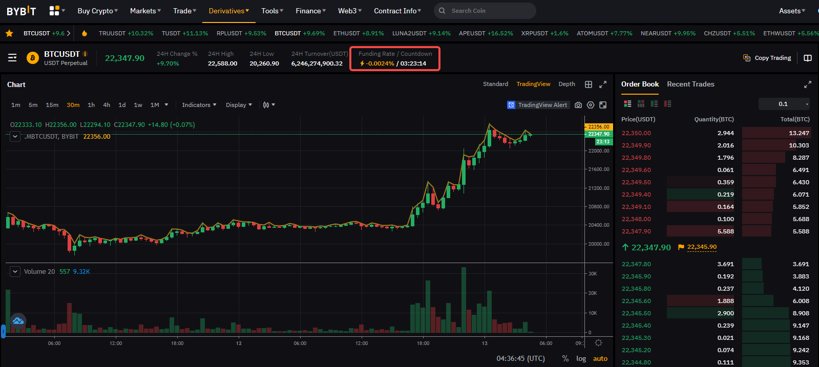 Щоб прив’язати ціну безстрокового контракту до спотової ціни, використовується механізм фінансування, щоб гарантувати, що ціна останньої угоди Bybit завжди буде прив’язана до глобальних стандартних спотових цін. Ось короткий огляд того, як це працює: якщо ринкова ціна безстрокового контракту перебуває вище спотової ціни (тобто ставка фінансування є позитивною), власники довгої позиції сплачують комісію за фінансування власникам коротких позицій. Це спонукає трейдерів відкривати більше коротких позицій та знижує ціни, зміщуючи їх до спотової ціни.
