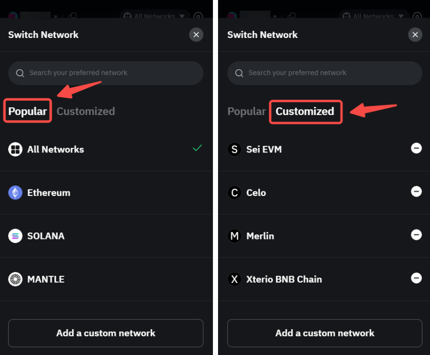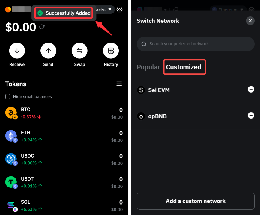 Мережу буде успішно додано до вашого гаманця Bybit. Ви можете переглянути всі свої користувацькі мережі на вкладці Користувацькі на сторінці Мережі.