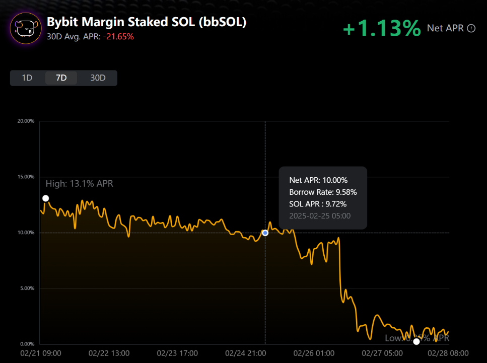 Крок 3. Наведіть курсор на графік APR, щоб переглянути чисту APR, ставку позики та APR SOL на будь-який конкретний момент часу.