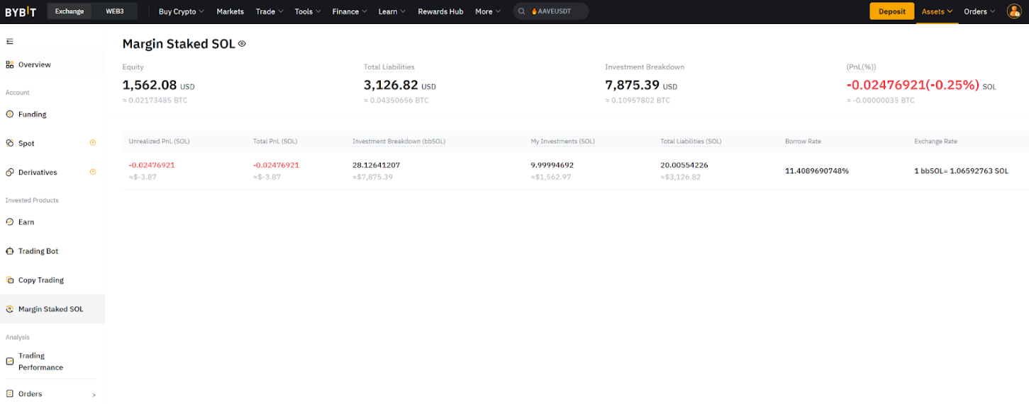 Крім того, на сторінці Активи SOL у маржинальному стейкінгу ви отримаєте огляд свого P&L, зобов’язань тощо.