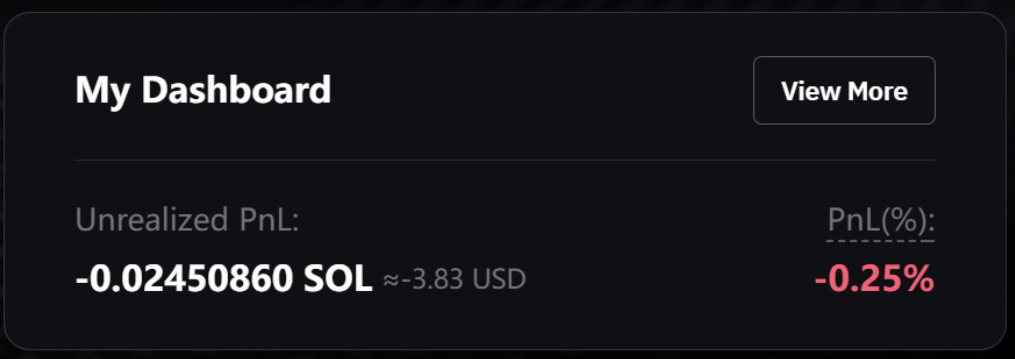 Крім того, перейдіть на Мою інформаційну панель у верхньому правому куті домашньої сторінки SOL у маржинальному стейкінгу. Тут ви побачите свій нереалізований P&L і P&L (%). Натисніть Переглянути більше, щоб отримати детальну інформацію за ордерами.