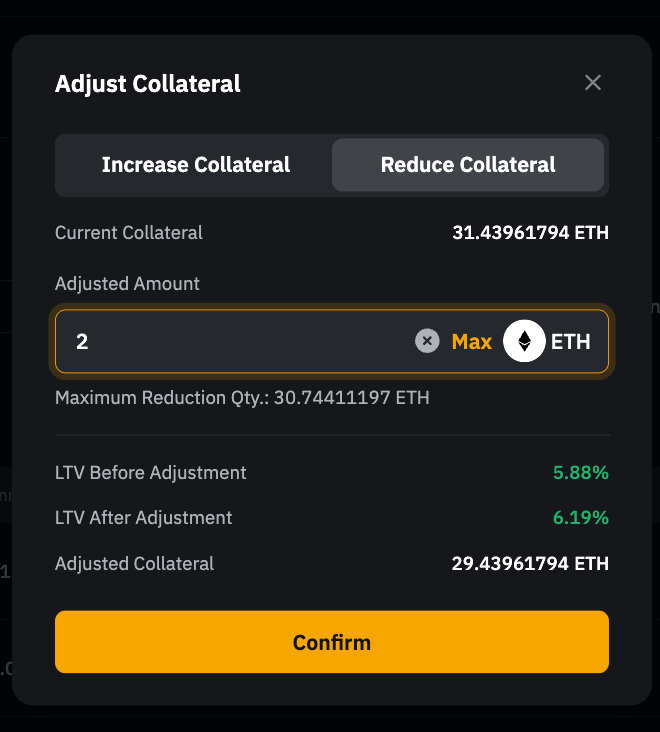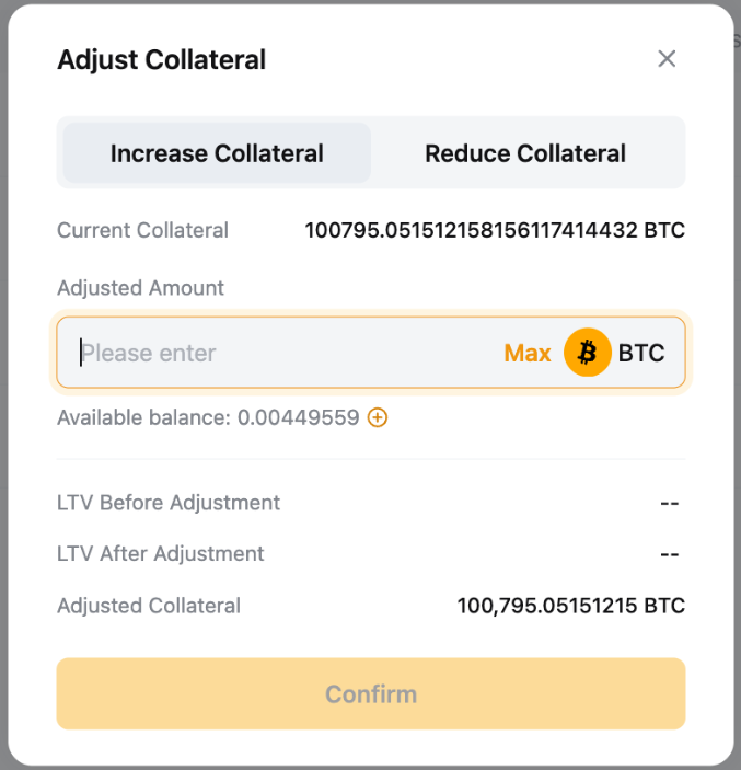 • LTV Відстроченої Ліквідації: Коли досягнуто порогового значення LTV відстроченої ліквідації, ліквідація не відбувається негайно. Натомість буде надано 24-годинний пільговий період, протягом якого ви можете додати заставу або частково повернути позику, щоб зменшити LTV до Початкового LTV. Якщо протягом пільгового періоду ваш LTV залишається на рівні LTV відстроченої ліквідації або вище, або якщо він перевищує LTV ліквідації в будь-який момент, негайно запускається ліквідація.