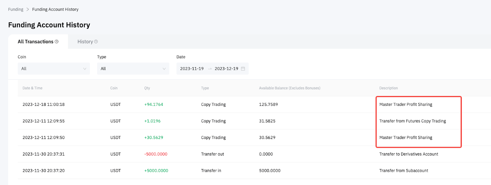 您可以在跟单账户资金记录页面上查看扣款记录和退款。