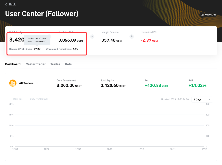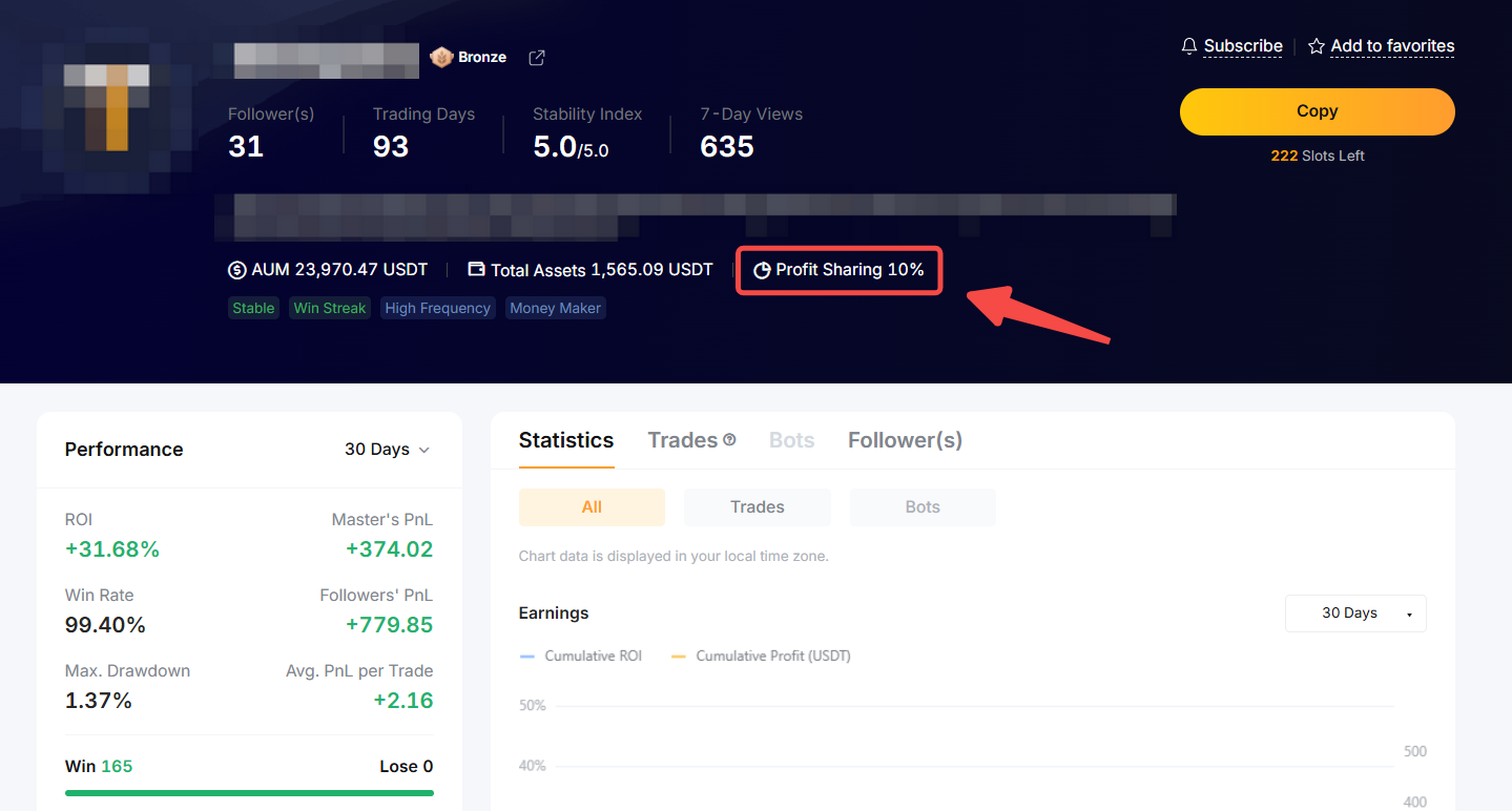 4. 仅当跟单用户在结算周期内的已平仓位盈利时,交易达人方可获得一定比例的跟单用户净收益。如果跟单用户面临净亏损,则预先扣除的分润金额将在结算日当天退还给跟单用户。