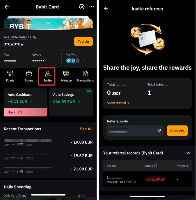- 邀请人:Bybit 的任何用户。请注意,您无需是 Bybit Card 用户,也可成为推荐人。