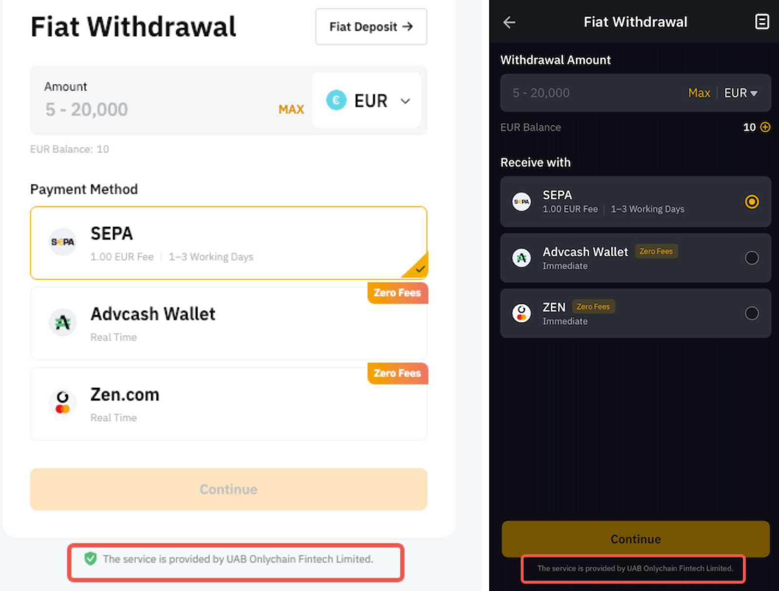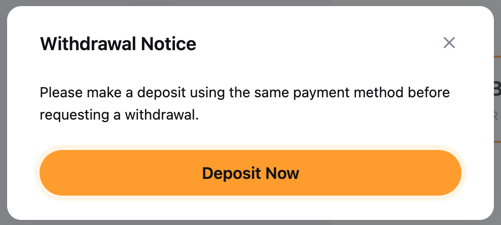 — 对于某些货币和支付方式,您只能将资金提取到您曾使用相同方式和货币充值过的账户。 如果这是一个新账户,请在尝试提款前先成功充值。 在进行法币提款前,请务必检查每种支付方式的要求。
