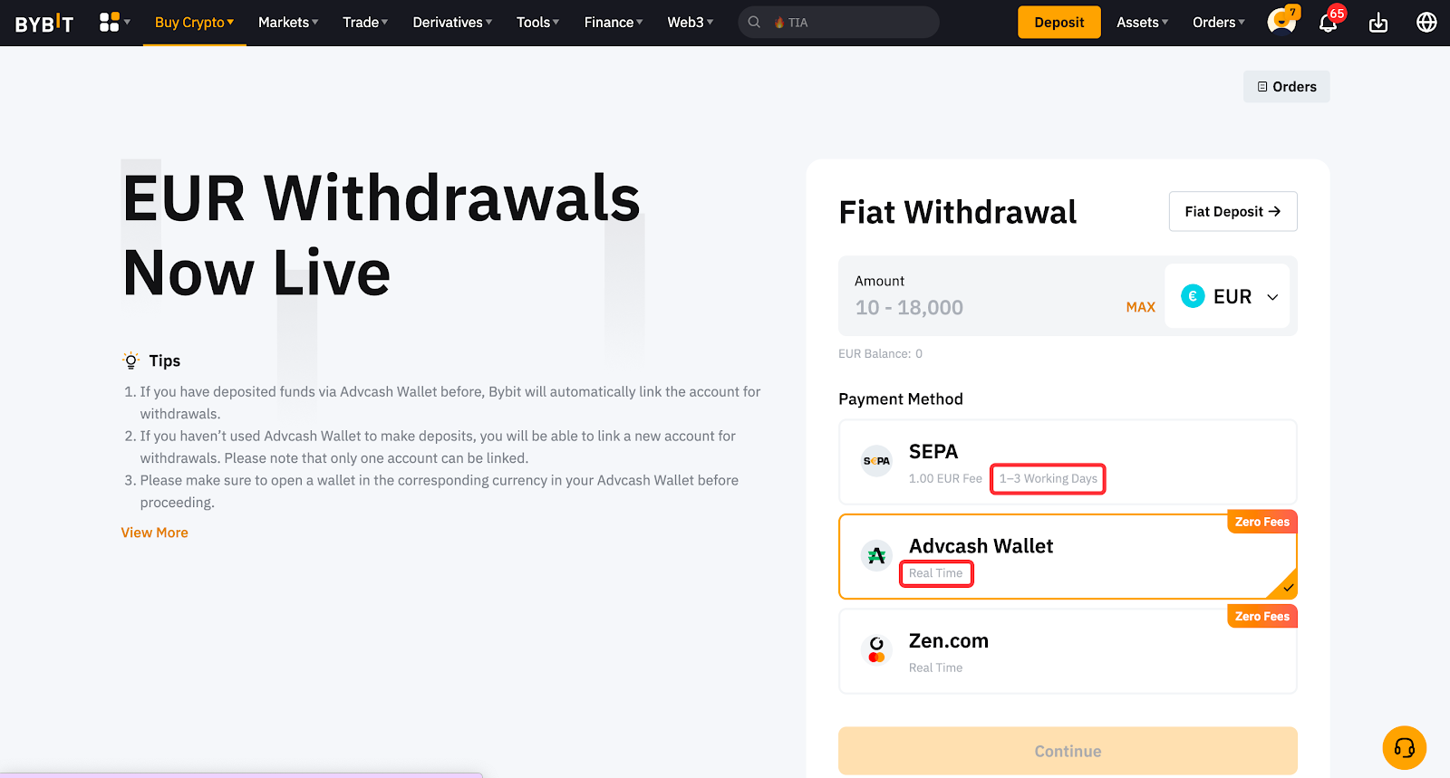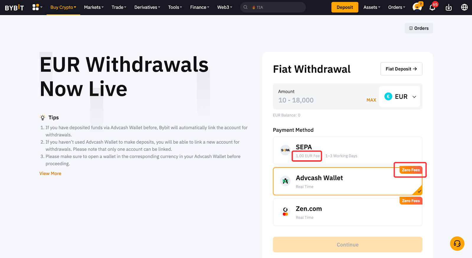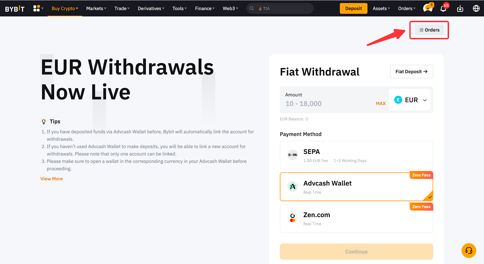 Bybit 仅支持一定种类的法币提币。您可以在法币提币页面查看法币提币支持的法币。