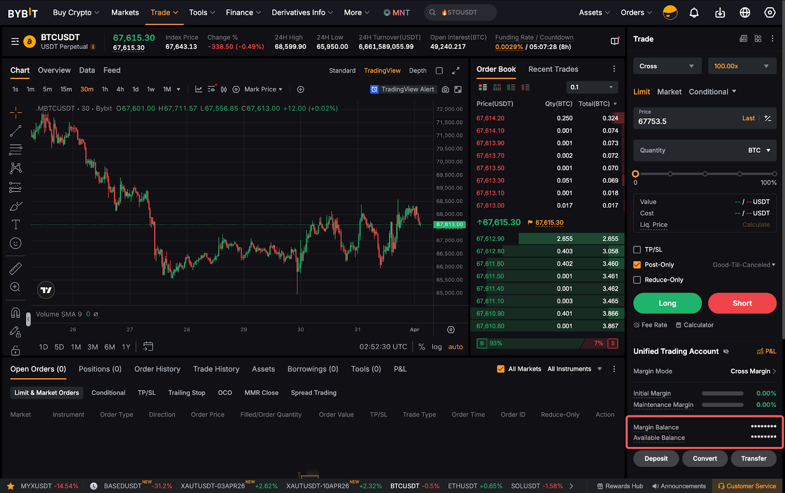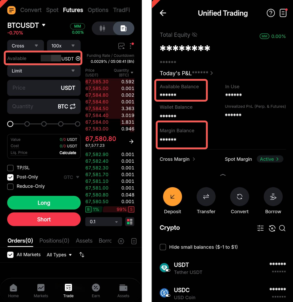 虽然保证金余额显示了账户中可用作保证金的金额,但可用余额是可用于下单的可用保证金余额。您可以在交易页面查看下单的可用余额。