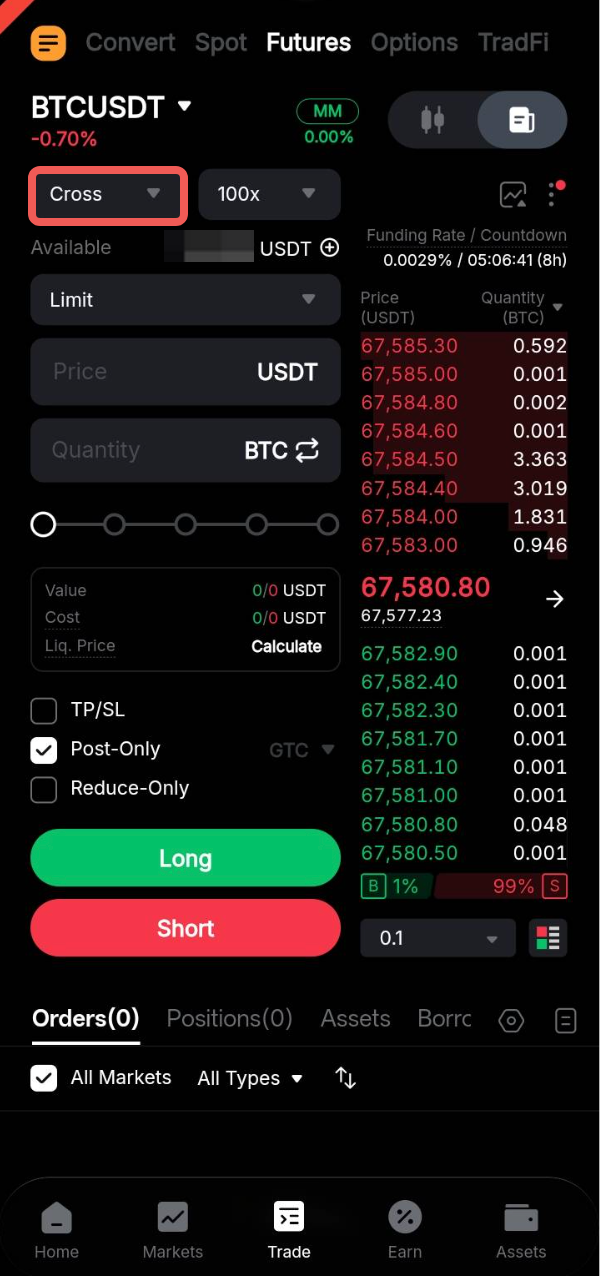 对于逐仓保证金模式,您需要持有相应的结算代币才能交易产品。例如,您需要拥有 USDT 才能交易 USDT 永续合约。在逐仓保证金模式下,仅支持现货交易、USDT 永续和交割、反向永续和交割以及 USDC 永续。