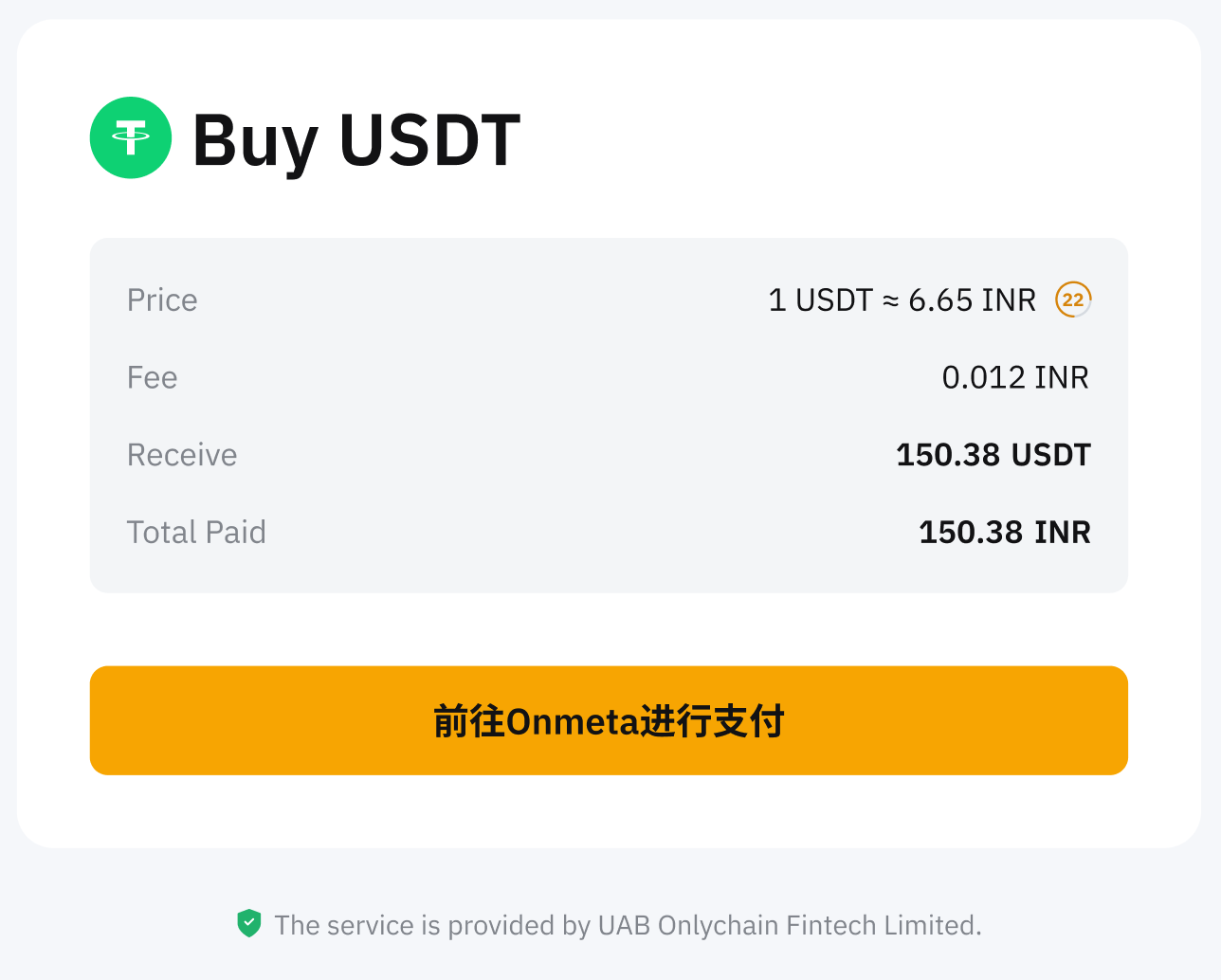 第 4 步:审核完成后,您将被重定向到 Onmeta 网页以完成付款。