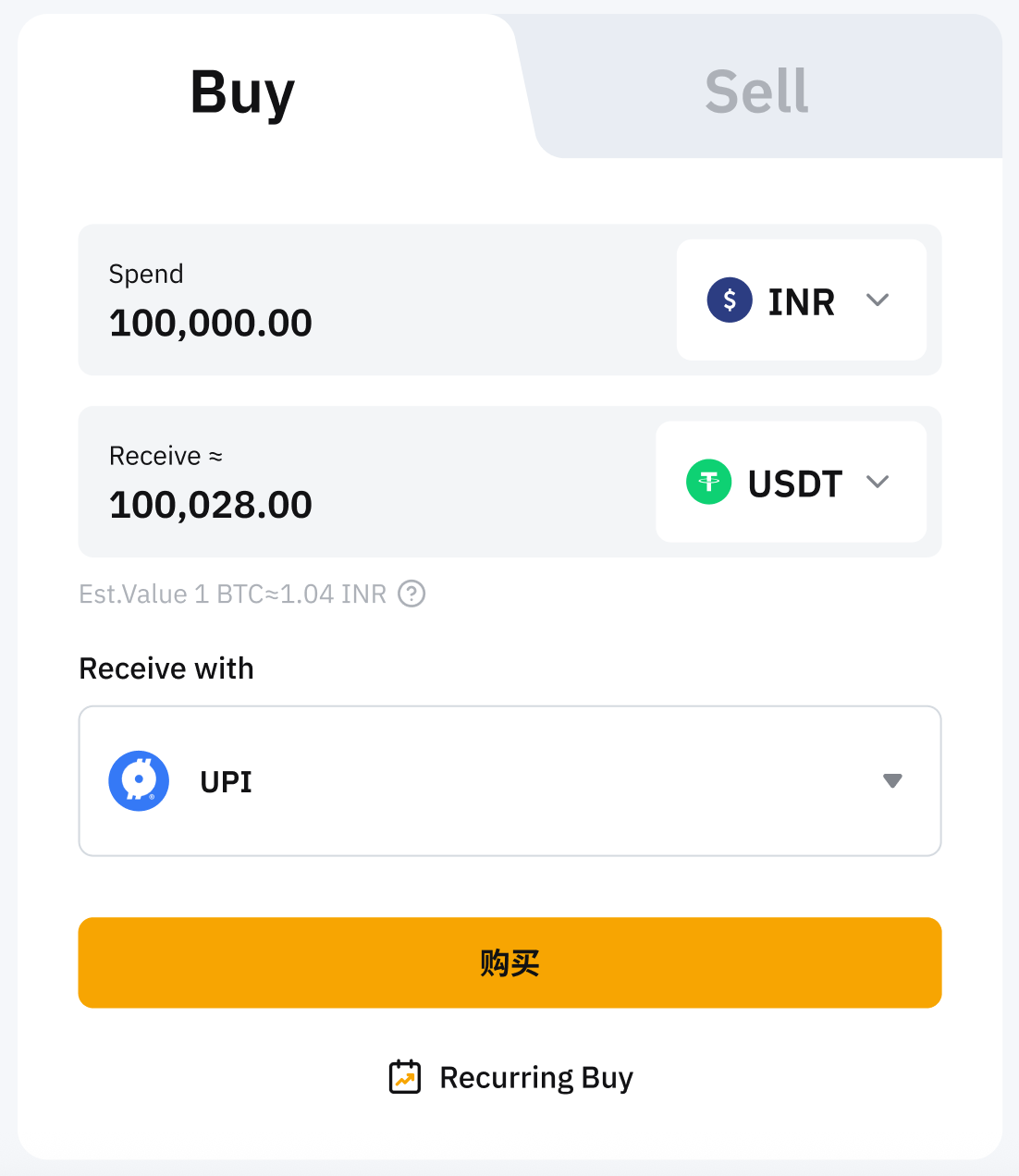 - 点击使用法币买币,您将跳转至第三方充值页面。