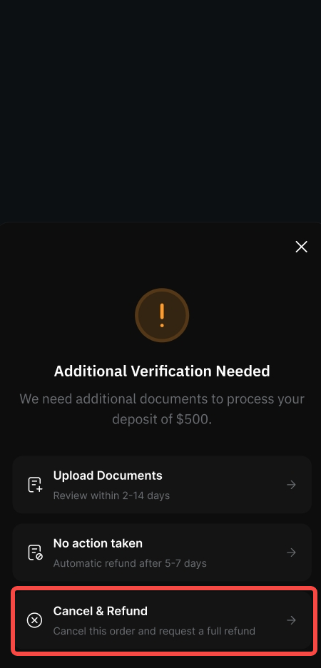 第 4 步:您的取消验证获得批准后,您将收到电子邮件和推送通知。资金通常会立即到账。但在极少数情况下,该过程最多可能需要 12 小时
