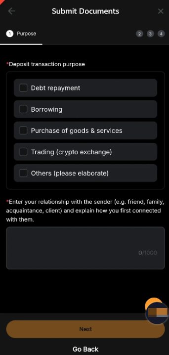 – 在进行法币充值或提币,或使用其他适用服务时,也可能会出现 EDD 验证提示。在这种情况下,请按照屏幕上的说明完成提交。