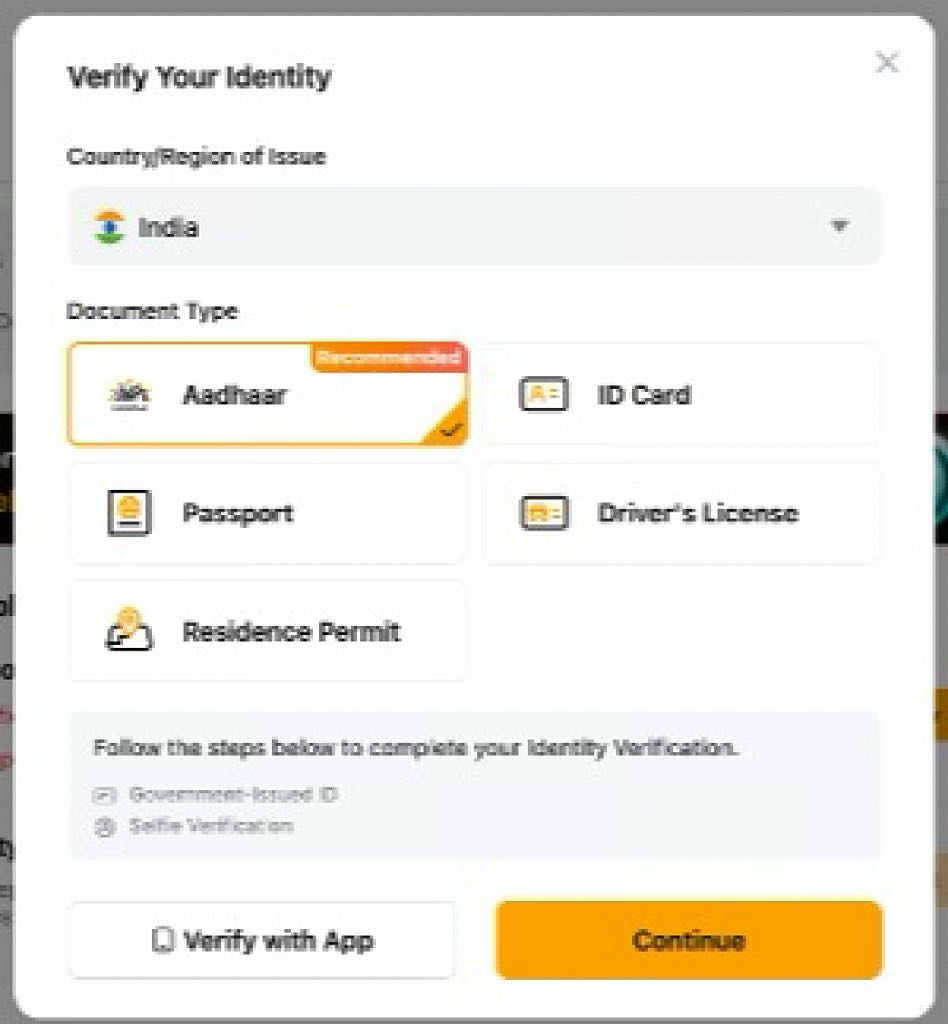— PAN 只能关联到一个 Bybit 账户。 使用 PAN 验证账户后,账户信息无法转入其他账户。 如有需要,请在更新身份证件页面上手动更新您的 KYC 详情。