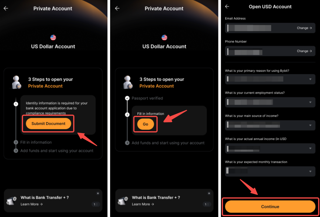 - 完成一份简短的问卷,涵盖您开设账户的目的、就业状态、收入来源等