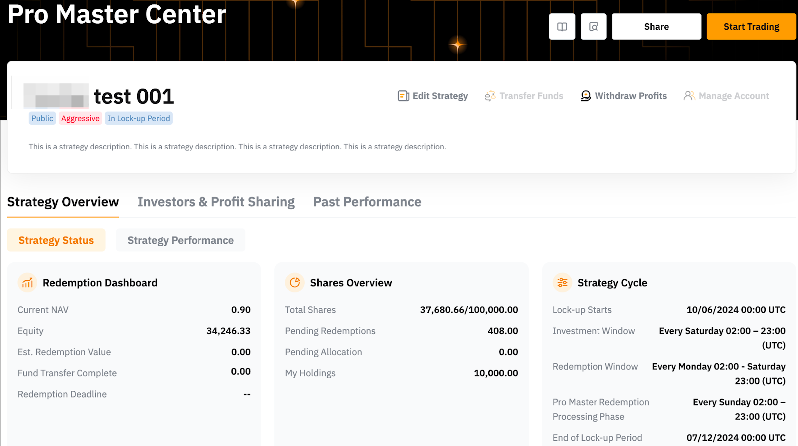 1. 赎回面板:赎回面板可提供关于跟单交易策略赎回流程的重要信息。