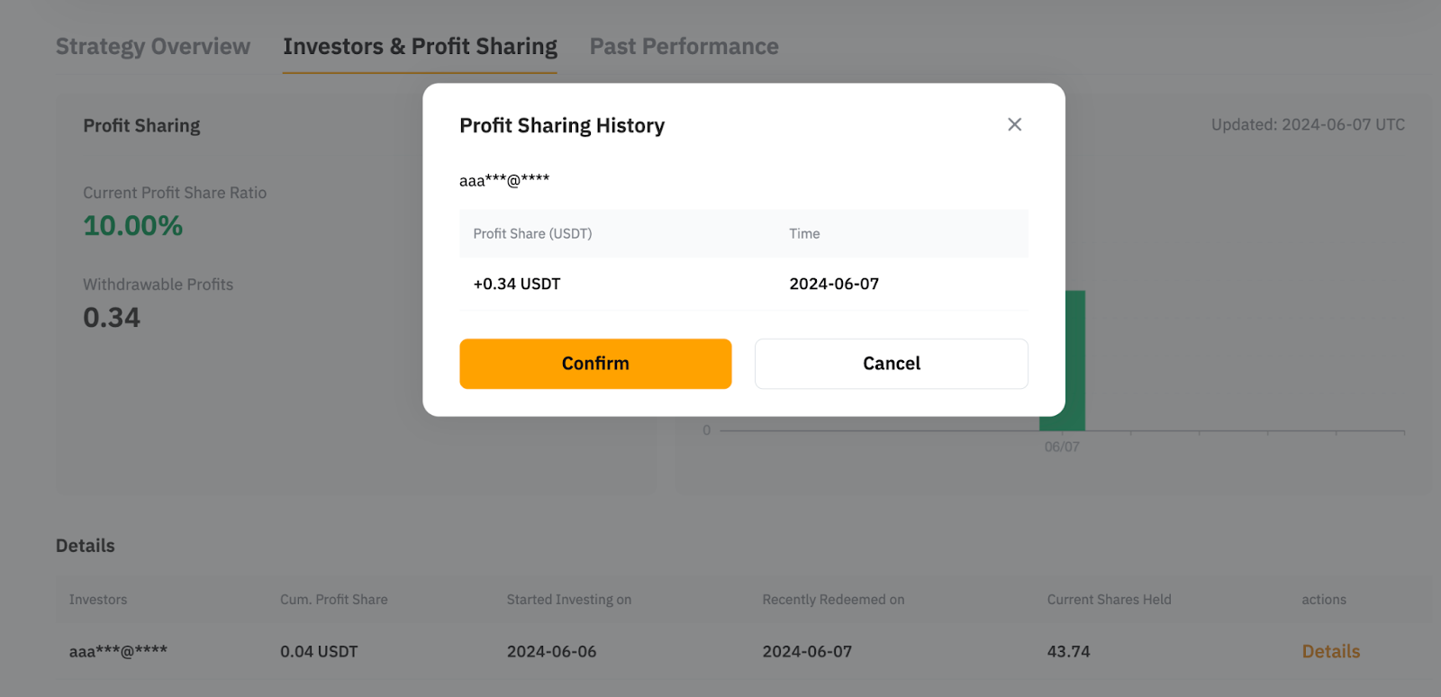 第 2 步:在弹窗中更新您想变更的参数,如分润比例,然后点击确认。