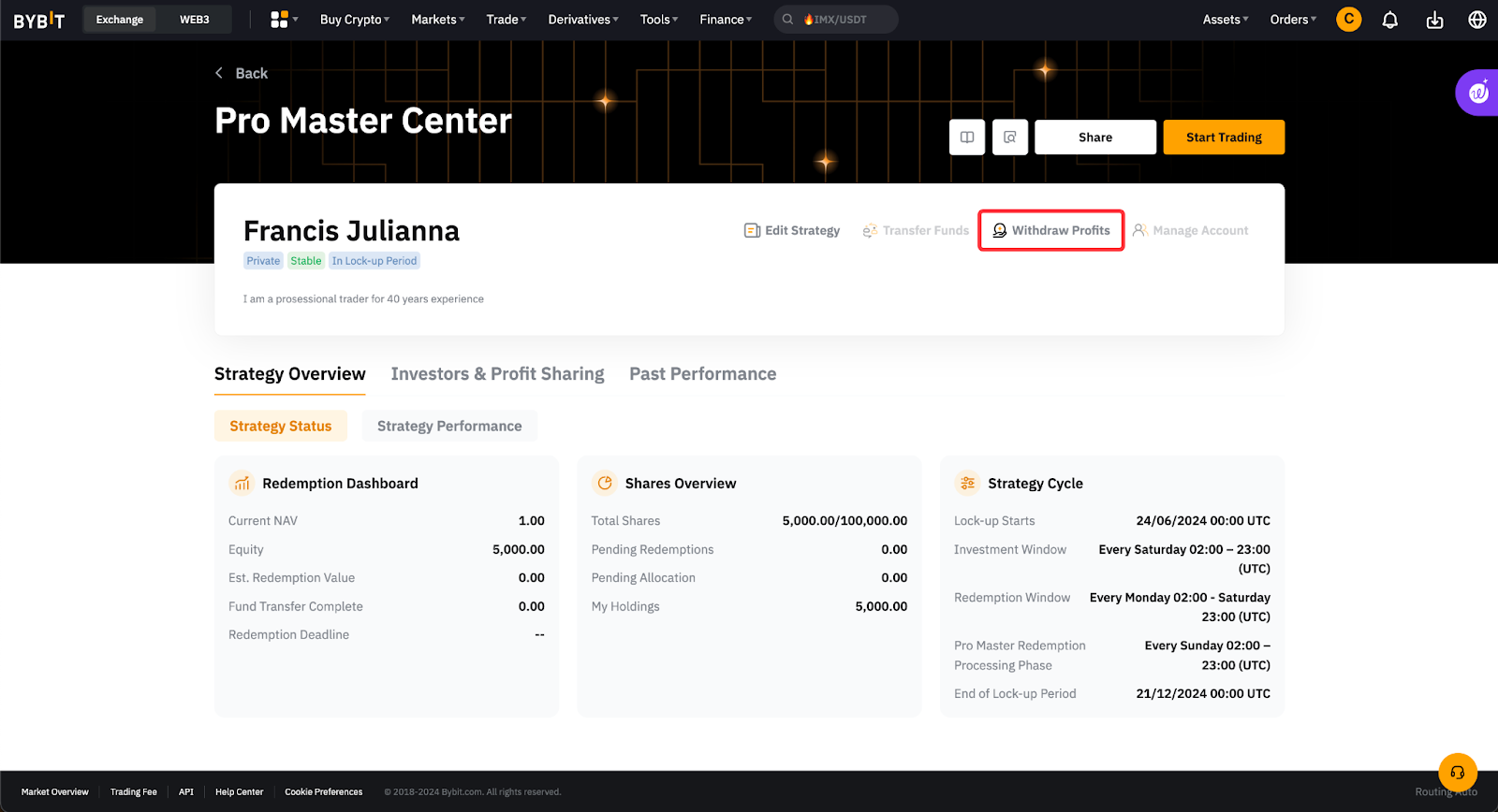 Pro 达人只能提取他们的利润分成,而不能提取已实现的交易利润。在赎回处理和结算阶段,提取利润分成将受到限制。如需了解分润规则的相关详情,敬请参阅本文。