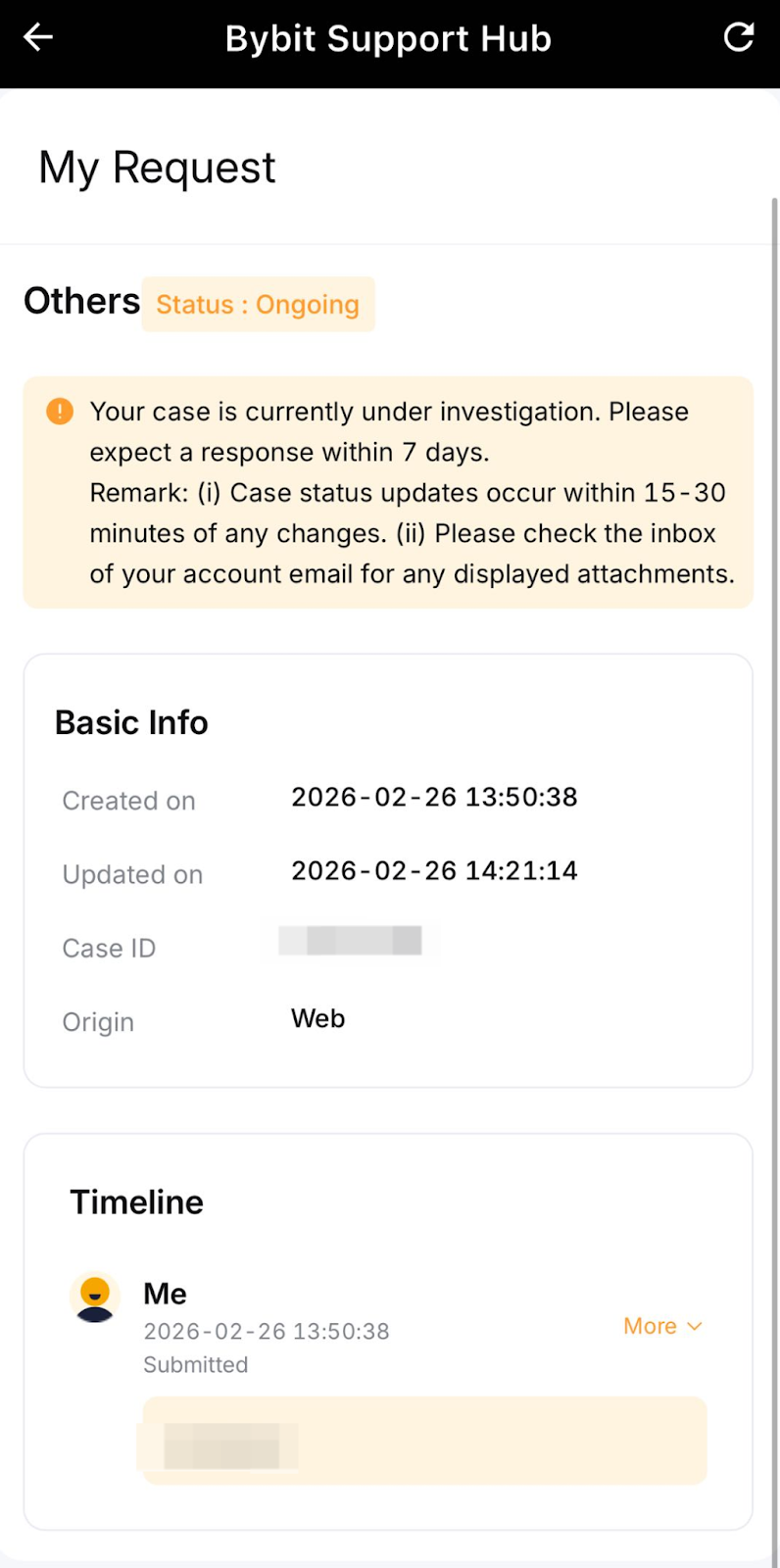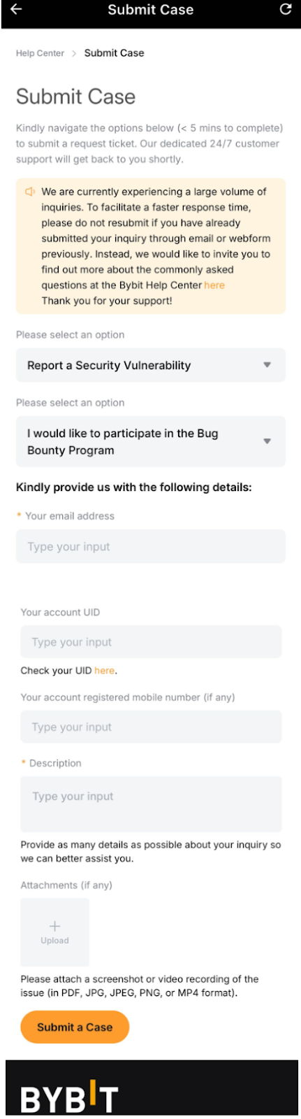 提交客服工单后,您可以使用 Bybit 客服中心实时监控其状态,而无需仅依赖电子邮件通知。该集中式面板会显示您的所有待处理工单和更新,并支持您直接与我们的客服团队互动。