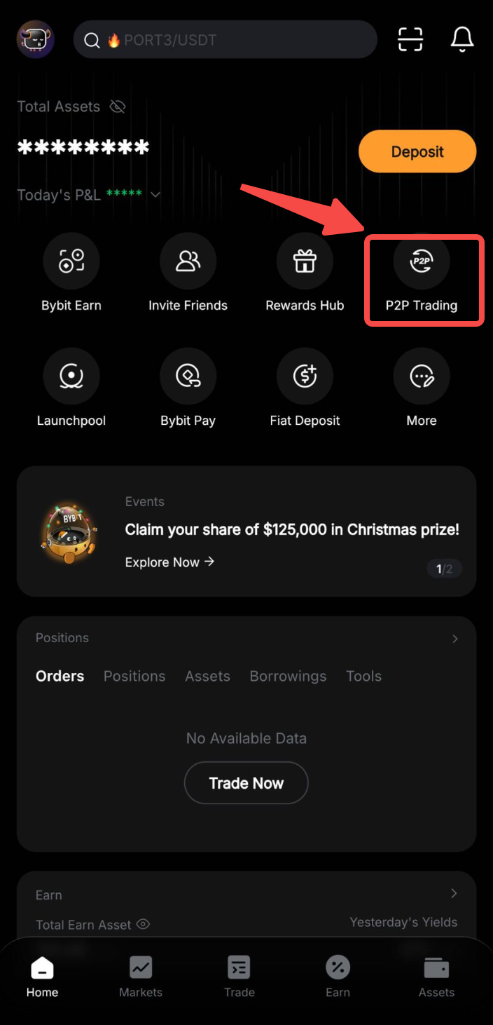 第 1 步:单击主页上的 P2P 交易以访问 P2P 交易页面。