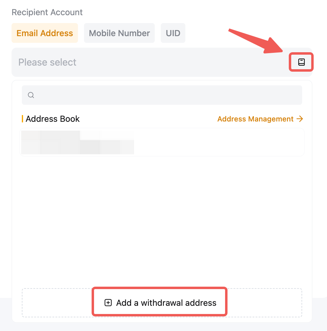 — 您可以点击添加,将邮箱地址、UID 或手机号码添加到您的钱包地址簿中。如需了解详情,请参阅如何添加提币地址。
