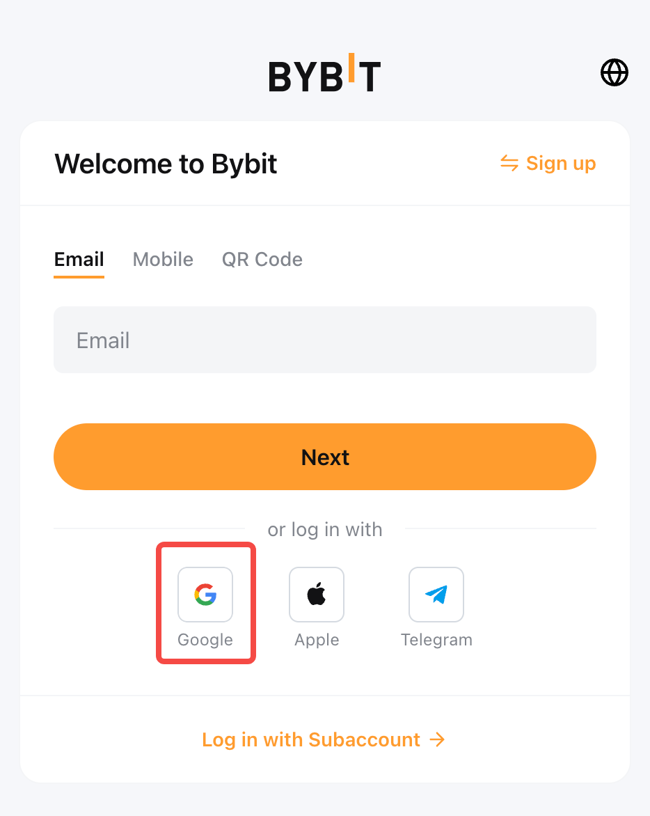第 2 步:输入注册 Bybit 账户时使用的邮箱地址或电话号码,然后点击下一步继续。
