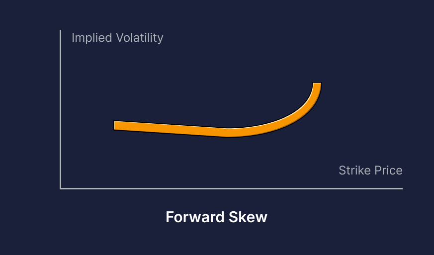 前偏倾斜:当行权价格更高的期权比行权价格更低的期权具有更高的 IV 时,就会出现前偏倾斜。