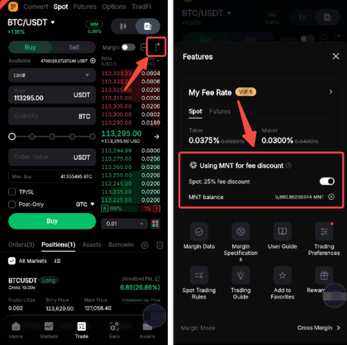 - 现货交易: 通过市场或限价单灵活购买 MNT。