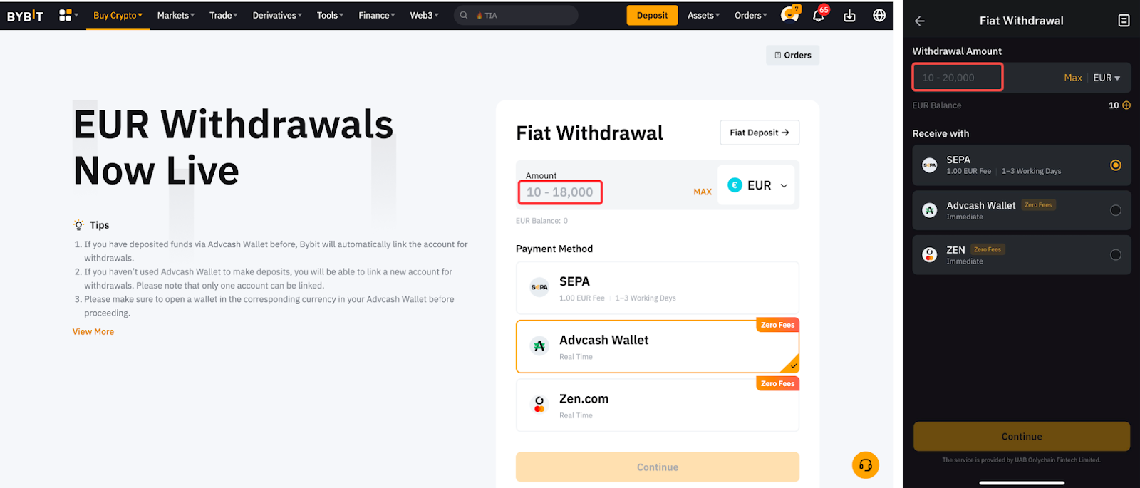 — 對於某些貨幣和支付方式,您只能將資金提取到您曾使用相同方式和貨幣充值過的賬戶。 如果這是一個新賬戶,請在嘗試提款前先成功充值。 在進行法幣提款前,請務必檢查每種支付方式的要求。